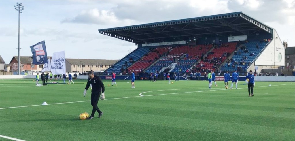 We head up to our seats in the main stand and for the first time we are given the option of a cushion to take up with us. Seats in the main stand were your usual plastic ones and the option of a padded seat was a welcome addition. Great view at the halfway line. We were 5 or so rows behind the dugout, where you could hear every word shouted from the side-lines. I don’t think the Montrose assistant was a huge fan of the referee and he made it clear with some of his shouts. Being so close added to the experience. As the goals were scored, we realised that it was our host Ross, that was making the stadium announcements. I wouldn’t be surprised if he filled up the water bottles and cut the oranges for half time too.