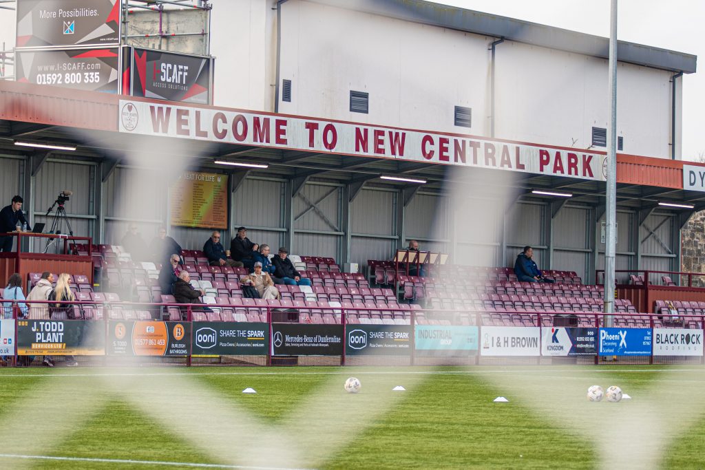 Back to Fife for hospitality number 6. A 40-minute bus trip to Kinross park and ride, then an 11 minute bus trip to Kelty high street. Simple. Turns out the 10:37 Dundee to Kinross is a popular trip and is fully booked. Turns out the 11:37 is equally as popular so alternative travel plans are needed. We jump on a train to Kirkcaldy in the hope that my sister can collect us from Kirkcaldy train station and then transport us to Kelty. Not a problem, but nearly 40 years living in Fife and she’s never once visited Kelty. Why would I? she asks. Fair Point. Google maps get us to the stadium in 20 minutes. Tucked away in a housing estate, we reach New Central Park and make it in time for the 12:00 start.